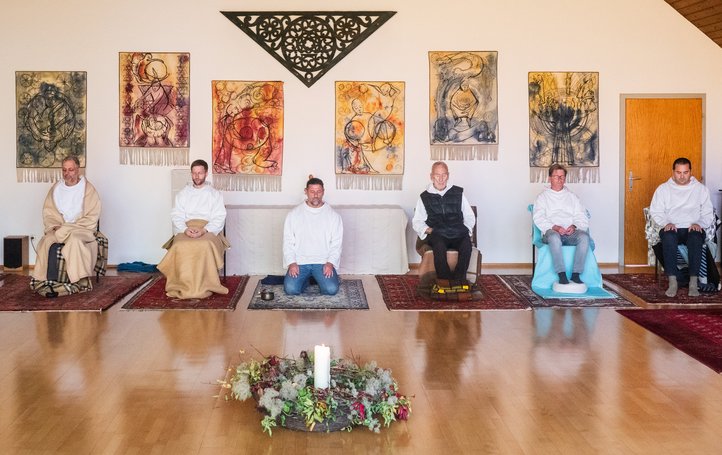 Prior Bruder Thomas Hessler mit den Brüdern von Gut Aich