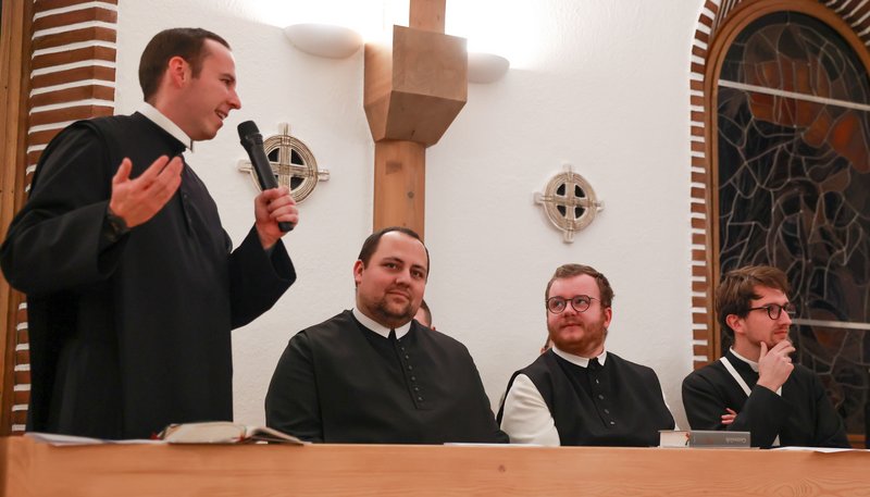 Vier junge Mitbrüder aus dem Kolleg St. Benedikt, Frater Nikolaus Aigenbauer OSB (Stift Göttweig), Herr CanReg. Matthias Gassner (Augustiner-Chorherrenstift Reichersberg), Frater Dominik Marold OSB (Stift Melk) und Frater Kilian Mitterhuemer O.Cist. (Stift Schlierbach) betonten die gute Kommunikation und Inspiration des Zusammenlebens in Salzburg.