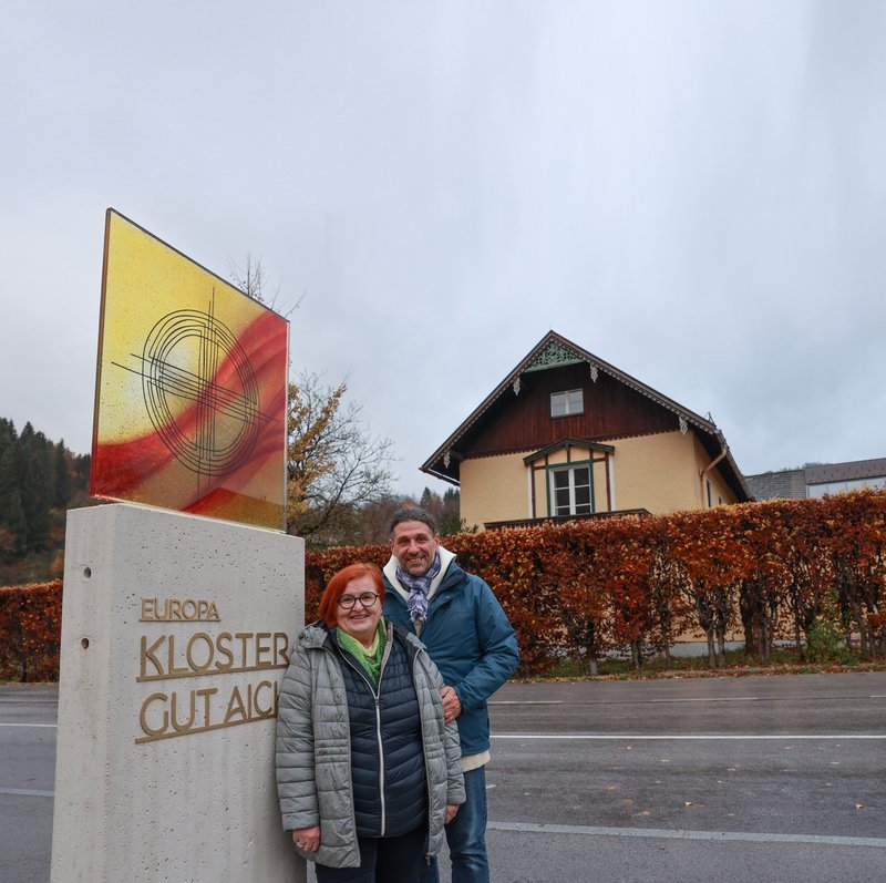 Zu ihrem runden Geburtstag hat sie sich Unterstützung für das Europakloster Gut Aich in finanzieller Form gewünscht. Bei einem gemeinsame Fotoshooting bedankte sich Br. Thomas Hessler, Leiter des Klosters.