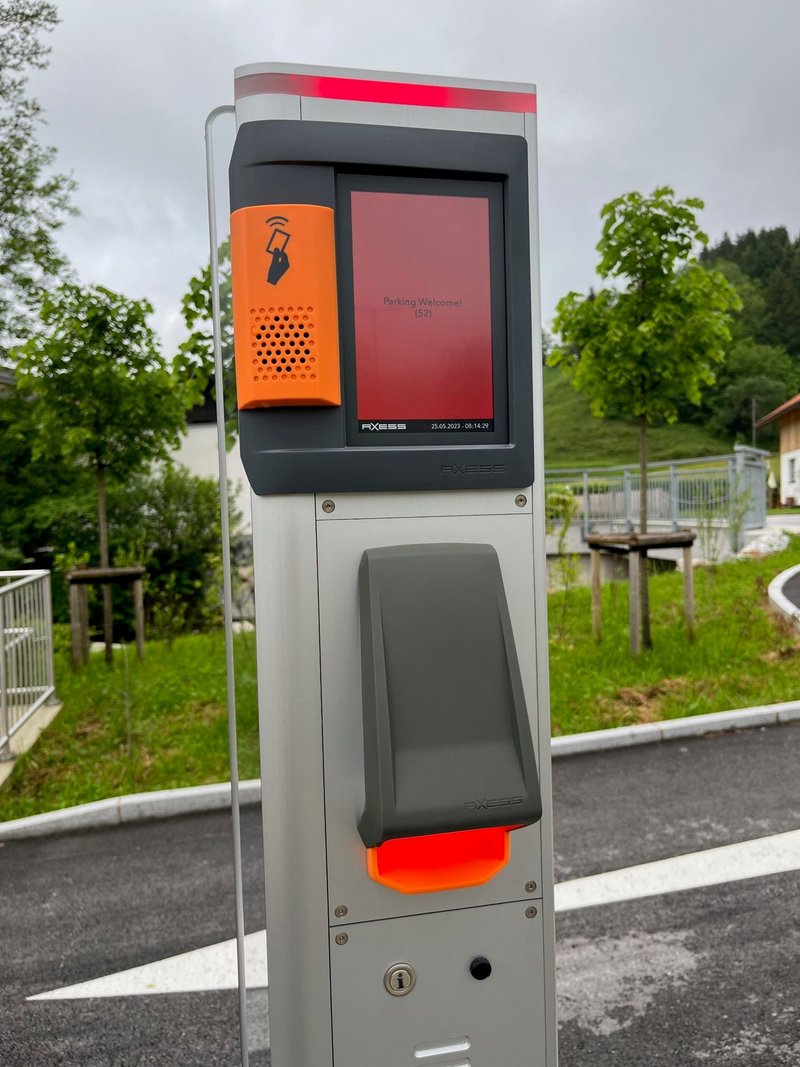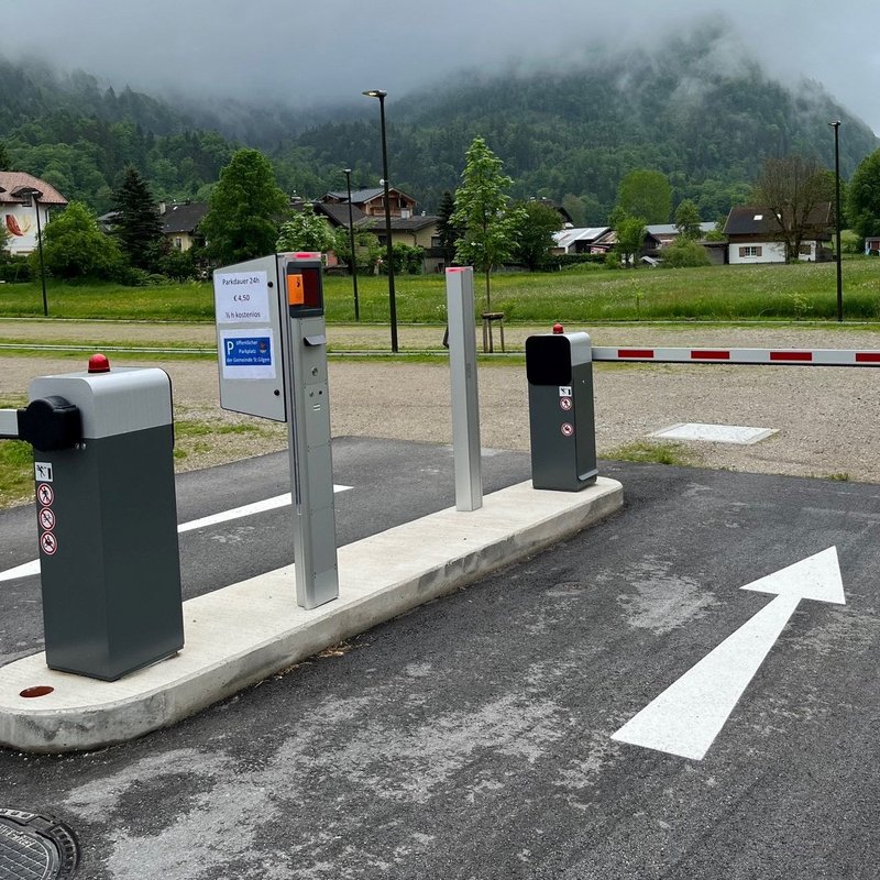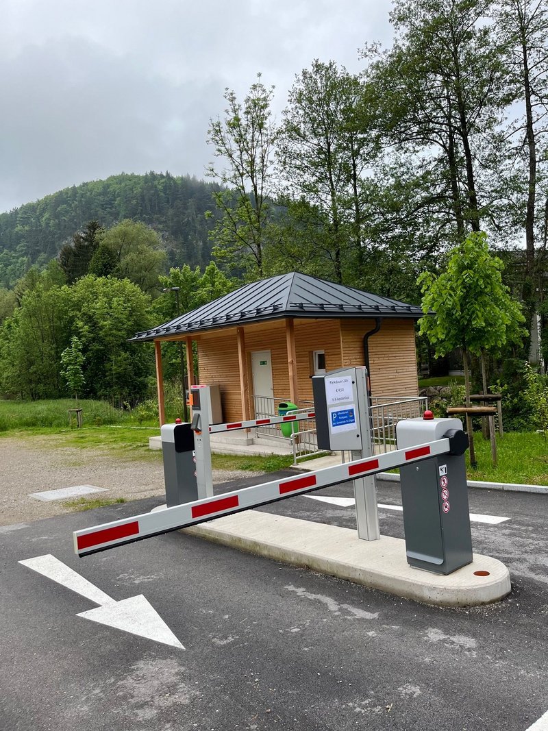 - den QR Code am Ausfahrtschein an die Scansäule halten