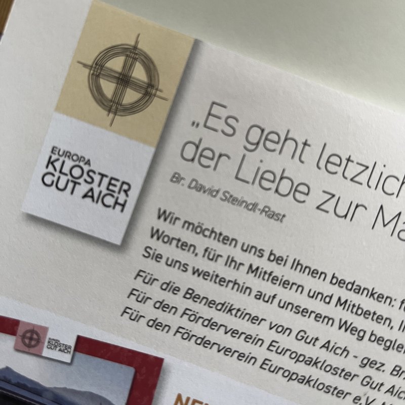 Falls Sie die Zusendung unseres Rundbriefes wünschen, erscheint dreimal im Jahr, melden Sie sich gern per Mail bei Susanne Windischbauer, Öffentlichkeitsarbeit Europakloster Gut Aich.