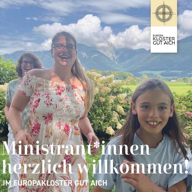 WIR FREUEN UNS AUF EUCH, die Ministrant*innen vom Europakloster Gut Aich, Br. Benedikt Hödlmoser und Belle Schwarzmann