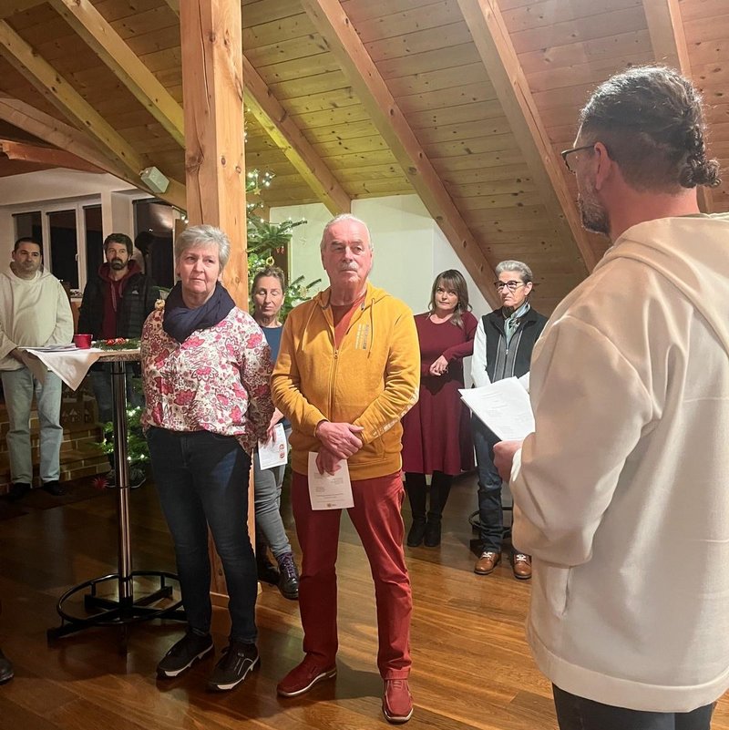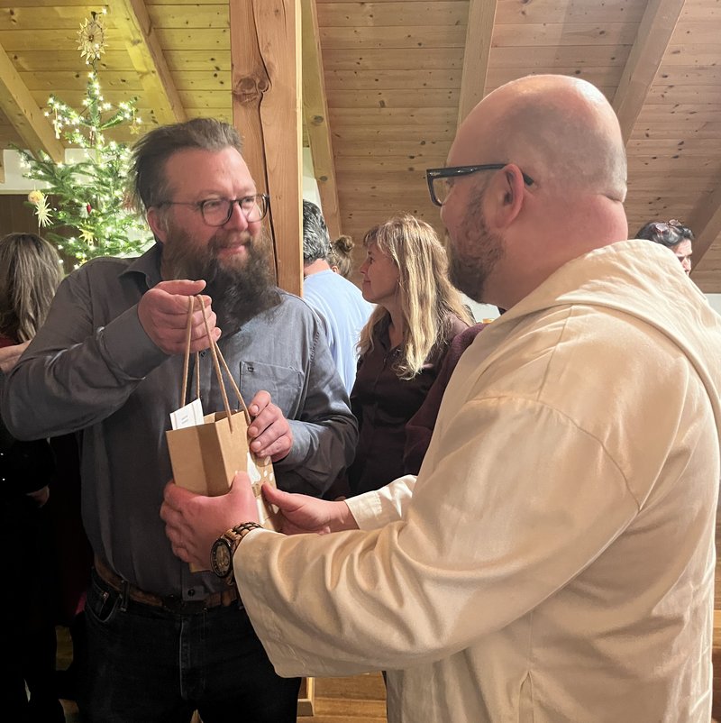 Mit einer Andacht in der Klosterkirche begannen wir unsere Feier. Nach Begrüßungsworten von Prior Bruder Thomas Hessler las Bernhard Pfusterer, unser wirtschaftlicher Leiter, lebendig eine Weihnachtsgeschichte vor. Mit stimmungsvollem Singen im Klosterhof ging es weiter. Bruder Thomas dankte für die engagierte Zusammenarbeit im vergangenen Jahr und hob langjähriger Helfer*innen hervor. Spannend war die Enthüllung des gemeinsam gestalteten Kunstwerkes #kunstambau - sehr gelungen! Die fröhliche Bescherung schloss mit einem gemütlichen Beisammensein bei Suppe (aus unserer Klosterküche), kalter Jause, Brot und Wein ab.