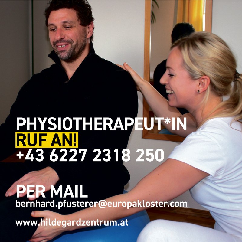 Das Hildegardzentrum ist das Ambulatorium für Physiotherapie, Psychotherapie und Heilmassage im Europakloster Gut Aich. Bei uns hast du die Chance dein Bestes zu geben, Stärken einzubringen, dich weiterzuentwickeln und Physiotherapie mitzugestalten. Zu unserem Team gehören: Ärzte, Psychotherapeut*innen, Physiotherapeuteninnen und Heilmasseurinnen. Grundlage unserer Arbeit ist eine wertschätzende, vertrauensvolle und kompetente Zusammenarbeit.
